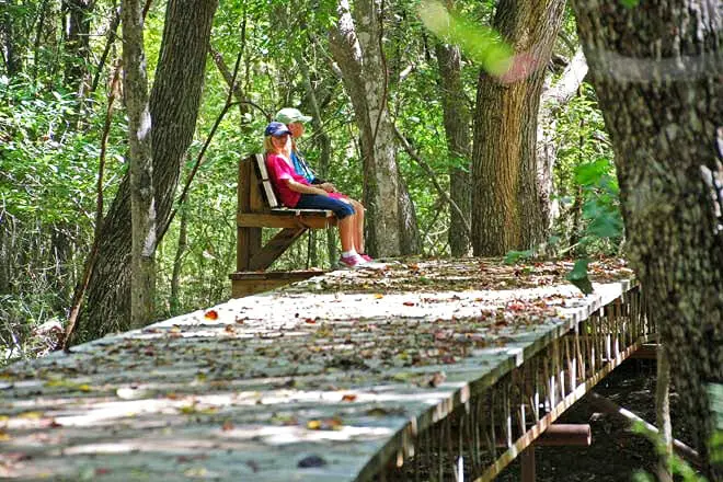 Escape de la rutina diaria recorriendo los pintorescos senderos del parque. También puede ver la vida silvestre del parque, incluidos los perritos de las praderas, los caimanes y los bisontes.