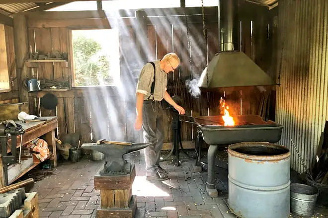 Interactúe con los intérpretes históricos disfrazados mientras demuestran una variedad de tareas fronterizas, como tejer y hacer velas. Además, explore las 9 estructuras históricas que datan de mediados del siglo XIX.