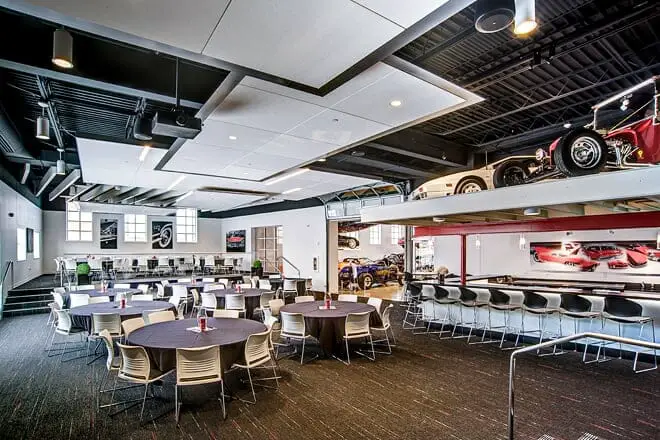 Disfrute de esta enorme galería que ha renovado artísticamente el histórico concesionario Cadillac que abrió en la década de 1950 con una impresionante colección que representa casi 100 años de historia del automóvil.