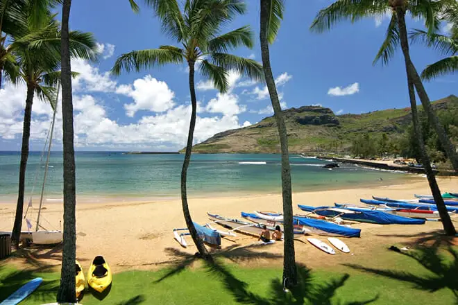 La playa de Kalapaki es una costa en forma de media luna rodeada de palmeras y pintorescas vistas a las montañas. Está cerca de muchas tiendas, restaurantes y centros turísticos de clase mundial.