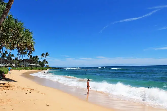 Poipu Beach Park, que se encuentra en la costa sur de la isla, es una de las mejores playas de los Estados Unidos.