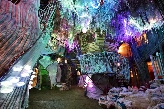Espere ver cosas como un bosque encantado, cuevas luminosas, una reproducción de una casa victoriana y mucho más.