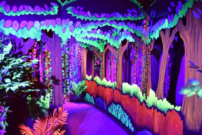 Espere ver cosas como un bosque encantado, cuevas luminosas, una reproducción de una casa victoriana y mucho más.