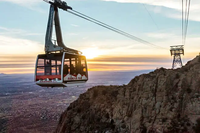 El Sandia Peak Tramway es una popular atracción turística que ofrece las mejores vistas de las montañas Sandia. Tiene el tercer tramo único más largo del mundo.