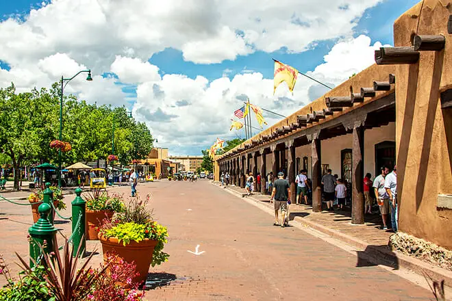 La Plaza de Santa Fe es un Monumento Histórico Nacional y una de las principales atracciones de Nuevo México. Es conocido como el Corazón de Santa Fe y presenta una arquitectura colonial tradicional hispanoamericana.