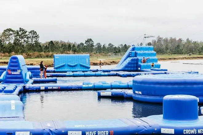 Elija entre muchas actividades acuáticas diferentes. Puedes hacer la carrera de obstáculos inflables sobre el agua o hacer wakeboard y kneeboard.