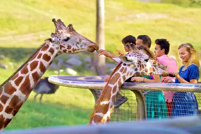 Puedes alimentar a una jirafa, acariciar a un kraal y ver a diferentes animales hacer trucos ingeniosos en el Show de las Maravillas de la Vida Silvestre.