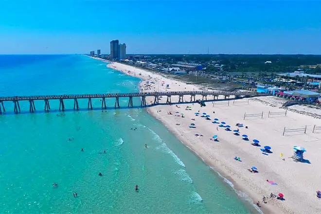 Panama City Beach tiene más de 27 millas de playas en toda la ciudad. Sus costas están suavizadas por arena blanca y fina y sus aguas son cristalinas la mayoría de las veces.