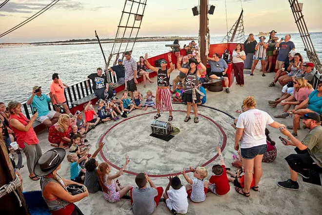 Navega por las aguas cercanas a Panama City Beach como piratas aventureros en un enorme barco pirata. Este crucero pirata se encuentra en Grand Lagoon.