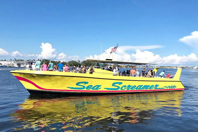 A diferencia de su nombre, el Sea Screamer de 73 pies le ofrece la oportunidad de dar un paseo tranquilo en las aguas de Panama City Beach.