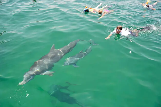 Los niños pequeños siempre recordarán lo cerca que nadaron de los delfines en aguas abiertas.