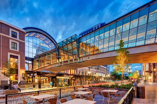 City Creek Center es el destino de compras y restaurantes más importante de Salt Lake City que ofrece 110 tiendas y tiendas que incluyen todas las marcas de lujo famosas y de alta calidad.