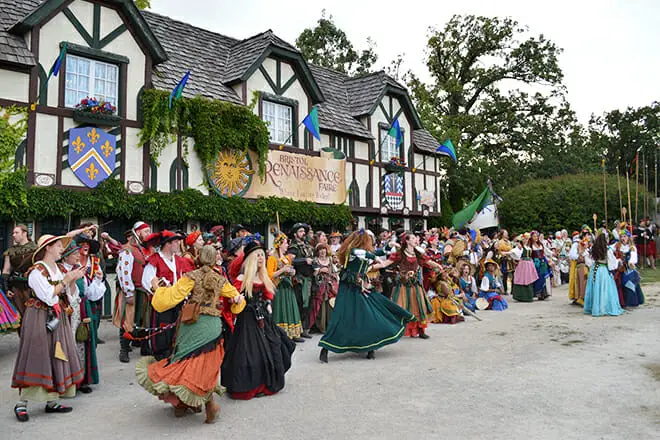 ¡Piense en torneos de justas, recreaciones históricas, actuaciones acrobáticas, música de bardos, disfraces de la época del Renacimiento y más!