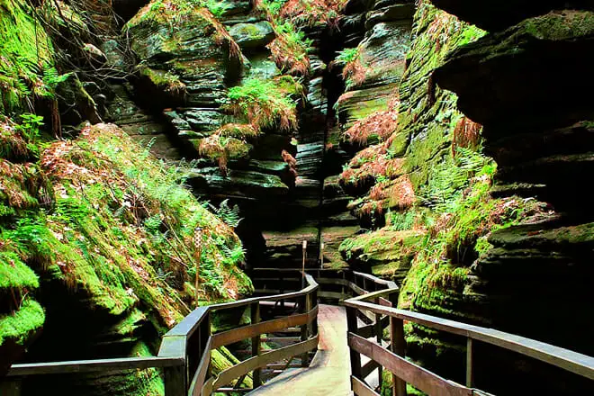 Si anhelas el consuelo que ofrece la naturaleza, Witches Gulch debería estar entre tus mejores lugares para ver en Wisconsin. Este barranco profundo, angosto y sinuoso en forma de V es en realidad el motivo del nombre de la ciudad.