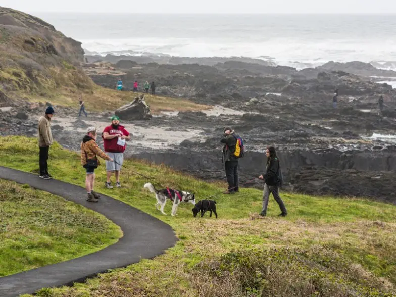 Para un tipo diferente de caminata escénica, diríjase a la costa de Oregón y visite Cape Perpetua. Esto está cerca de la ciudad de Yachats, en Oregón, y muchos de los senderos recorren la escarpada costa con vistas a la playa y las olas del océano. Una buena ruta va desde Tillicum Beach hasta Yachats porque puedes quitarte los zapatos y caminar por la orilla arenosa. Ubicado en el área escénica de Cape Perpetua del bosque nacional de Siuslaw, también puede comenzar su caminata en Cape Perpetua Trailhead y terminar en Cape Perpetua Stone Shelter para una caminata de poco más de seis millas de largo. Se permiten perros en esta área con correa.