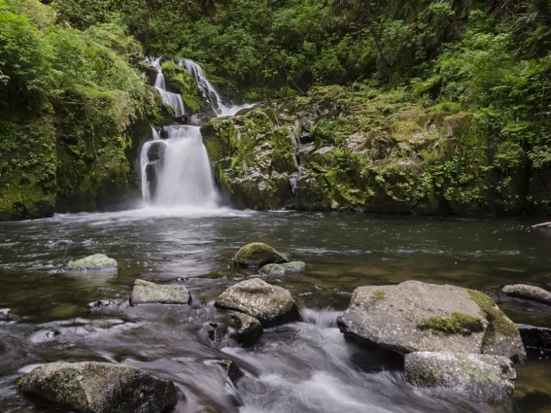 Otro sendero de Oregón muy popular que vale la pena visitar es el sendero Sweet Creek. Este es un sendero fácil cerca de la ciudad de Mapleton que admite perros y niños. Esta es una gran caminata porque pasa por varias cascadas, incluida la gran final de Sweet Creek Falls. Este es un sendero de ida y vuelta que tiene aproximadamente dos millas de largo y tiene cuatro senderos desde donde puede comenzar. Si recorre el sendero Sweet Creek Falls Trail #1319, por ejemplo, puede ver 11 cascadas con abetos de Douglas, alisos y arces. Si camina por este sendero en la primavera, puede ver algunas hermosas flores silvestres, y los colores del otoño realmente resaltan en la temporada de otoño. Este sendero está abierto todo el año y hay un baño de bóveda disponible en Homestead Trailhead.