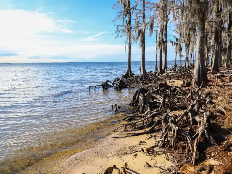 Fontainebleau State Park también se encuentra en un lago del sur de Luisiana, y las playas son sólidas para familias y niños. Una gran ventaja de venir a una playa en este parque estatal sería la lista de comodidades, ya sean actividades recreativas o baños grandes y limpios. Es común que los viajeros acampen aquí, ya que el sitio es óptimo para vehículos recreativos, con todas las conexiones y una estación de descarga también. Junto con la playa y el muelle, los niños pueden disfrutar del área de juegos con chapoteadero.