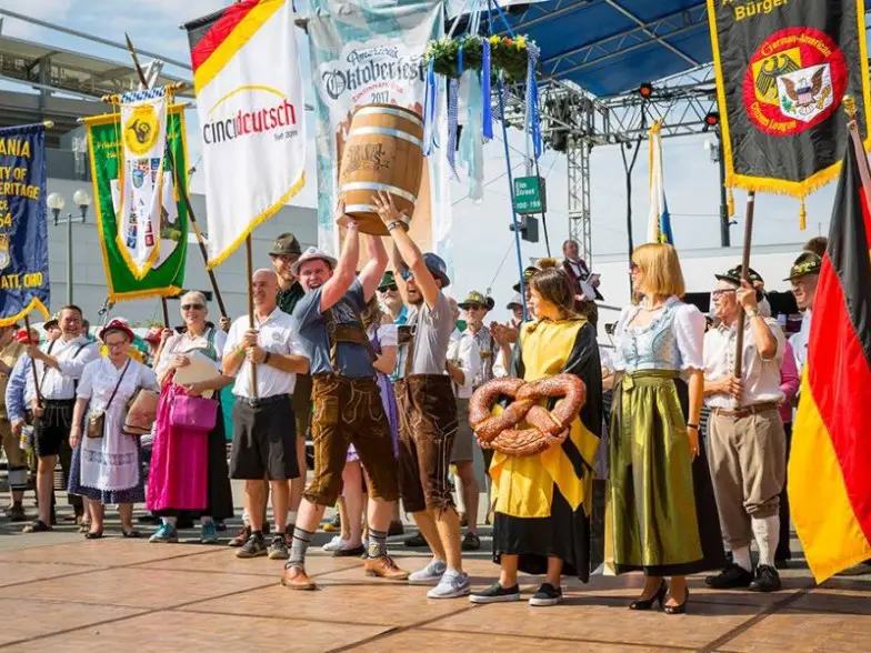 El Oktoberfest más grande de Estados Unidos se lleva a cabo todos los años en Cincinnati, Ohio. Alrededor de medio millón de personas asisten a este festival conocido como Oktoberfest Zinzinnati, que se lleva a cabo desde 1974. Todo comienza con la carrera anual de salchichas Wieners en la que 100 perros salchicha vestidos como perros calientes corren hasta la meta. Se consumen más de 3,600 libras de chucrut, 80,000 salchichas bratwurst y 23,000 pretzels y el evento también ostenta el título del Libro Guinness de los Récords Mundiales por el baile de pollo más grande cuando 48,000 participantes, incluido el Príncipe de Baviera, lo realizaron en 1994.