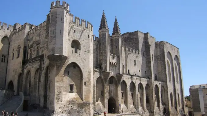 Una vez fortaleza y palacio, la residencia papal fue la sede de la cristiandad occidental durante el siglo XIV. La construcción se inició en 1335 y se completó en menos de veinte años bajo el liderazgo de dos papas constructores, Benedicto XII y su sucesor Clemente VI. El Palacio de los Papas es el palacio gótico más grande de toda Europa (15.000 m2 o 160.000 pies cuadrados de superficie, lo que equivale a 4 catedrales góticas). Se celebraron seis cónclaves papales en el Palacio, antes de que los papas regresaran a Roma en 1377. En los siglos siguientes, el palacio funcionó como residencia de las fuerzas antipapales, cuartel militar y prisión. Hoy en día, más de 600.000 visitantes al año admiran las cámaras privadas del Papa y los frescos pintados por el artista italiano Matteo Giovannetti.