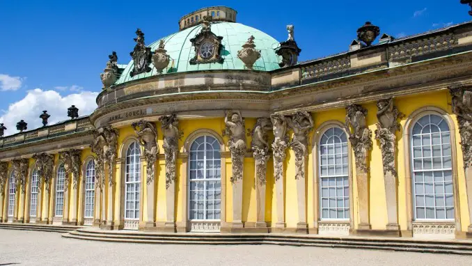 Ningún otro palacio está tan relacionado con la personalidad de Federico el Grande, rey de Prusia, como el Palacio Sanssouci en Potsdam, cerca de Berlín. El nombre Sanssouci –frase en francés que se traduce como “sin preocupaciones”– debe entenderse como un deseo del rey, porque esta residencia de verano fue su refugio en tiempos difíciles. Sanssouci a menudo se considera el equivalente alemán de Versalles (ver más abajo), aunque presenta un estilo rococó más íntimo y es mucho más pequeño que su contraparte barroca francesa. La ubicación del castillo, sus famosos jardines en terrazas y el elegante esplendor de sus interiores, hacen que el amor del rey Federico por la belleza del entorno, la "Arcadia prusiana", sea palpable para los turistas del siglo XXI.