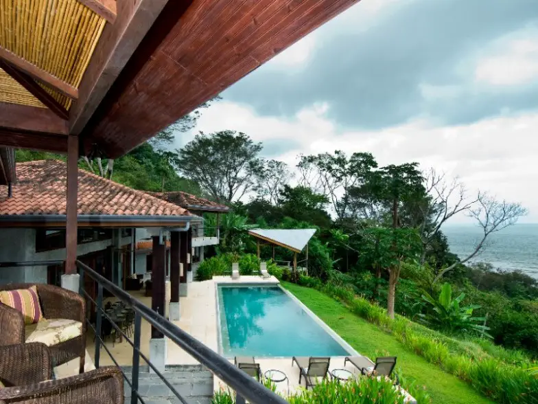 Esta villa de 6,500 pies cuadrados ofrece las mejores vacaciones de surf de lujo para hasta 14 huéspedes en Playa Dominical, a solo 100 pies sobre las olas. Disfrute de la selva tropical, las impresionantes vistas al océano y el sonido de las olas desde todas las habitaciones. Solo uno de los aspectos más destacados es la piscina grande y profunda con un borde infinito que fusiona la piscina y el mar en lo que parece "un tramo continuo de azul tropical".