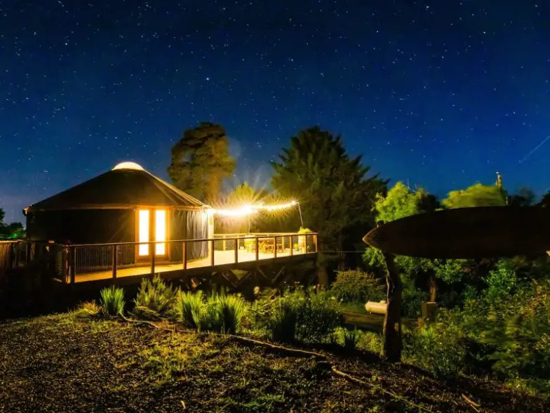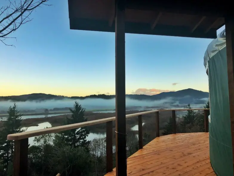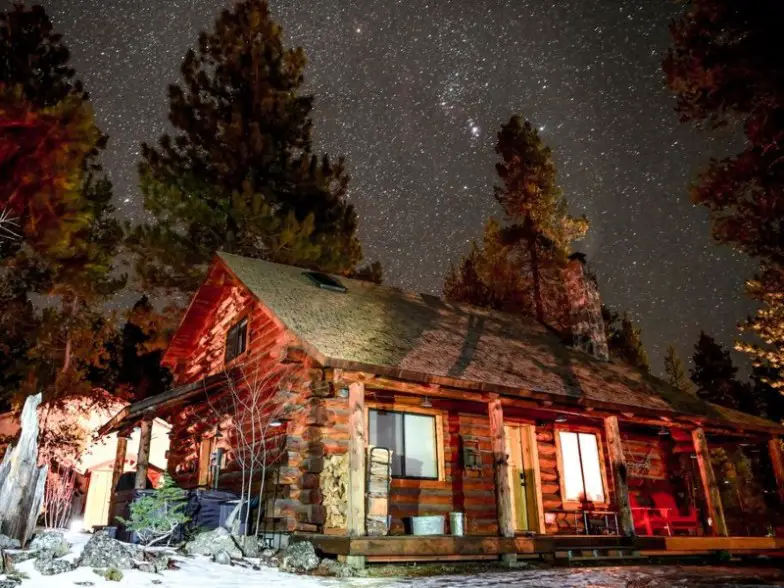 Una yurta es una estructura similar a una tienda de campaña, que tiende a ser más permanente. Justo en las afueras de Bend, este se encuentra en muchos acres de tierra que se extiende. Las montañas se pueden ver en la distancia, y un pequeño estanque está justo afuera de la puerta. Con más muebles que algunas yurtas, esta es particularmente cómoda y hogareña. Salga para disfrutar del cielo nocturno.