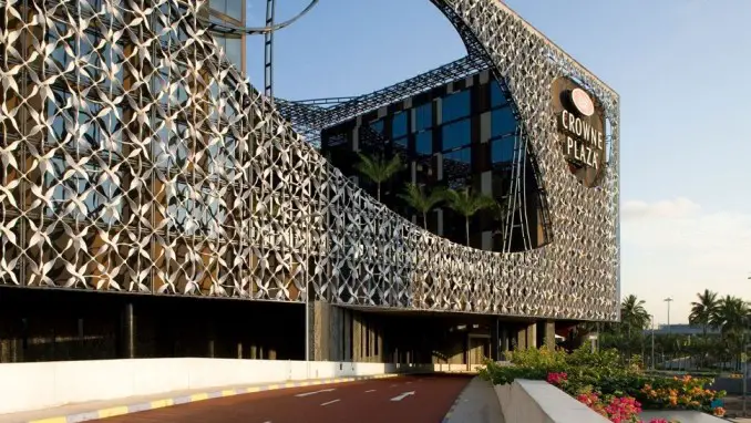 Diseñado por el estudio de arquitectura WOHA Designs, ganador de múltiples premios, con sede en Singapur, el Crowne Plaza Changi Airport de 563 habitaciones, ubicado en la Terminal 3, refleja un entorno singapurense único: tropical, asiático, multicultural y cómodo, pero también eficiente, elegante y de alta tecnología. y global en perspectiva. El hotel cuenta con pasillos abiertos, patios y extensos jardines estilo selva tropical, creando un ambiente tropical cálido. El estilo arquitectónico único incluso permite que la luz natural fluya hacia los baños de invitados. El hotel está ubicado junto a Jewel, donde los huéspedes pueden maravillarse con la espectacular Rain Vortex, la cascada interior más alta del mundo.