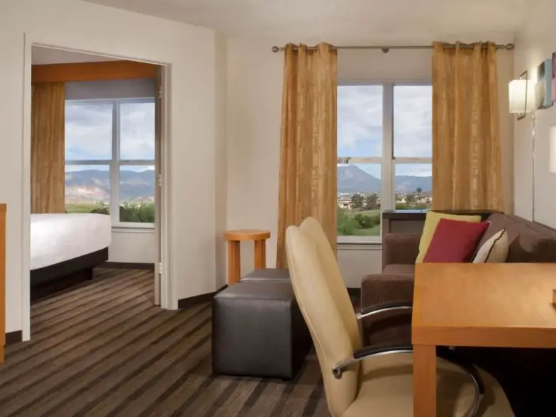 Este hotel de estadías prolongadas del norte de Colorado Springs ofrece una serie de comodidades y una excelente vista de Pikes Peak. Cada suite viene con una cocina completa con un refrigerador grande, estufa, microondas, tostadora, utensilios de cocina y platos. Sin embargo, si no tiene ganas de cocinar el desayuno en su habitación, hay desayuno gratis en el lugar. Junto con Wi-Fi gratis y DIRECTV, MCM Elegante Suites hace que cada suite se sienta como en casa.