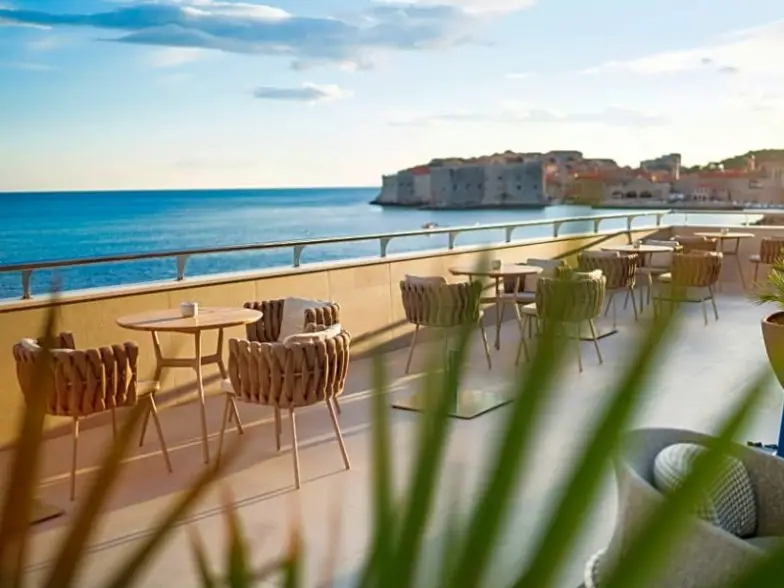 El Hotel Excelsior de cinco estrellas, que data de 1913, ha recibido a muchos huéspedes ilustres durante décadas, incluidos la reina Isabel II y Sir Roger Moore. Se compone del edificio original, Villa Odak, con una extensión moderna que se ha agregado, todo construido en una ladera empinada. Su ubicación idílica da como resultado unas vistas particularmente asombrosas de las murallas medievales de la ciudad que se elevan desde el mar, a solo unos pasos de la playa privada del hotel. Muchas de sus modernas habitaciones cuentan con amplios balcones, y todas sus suites están diseñadas individualmente, incluidas obras de arte creadas por artistas locales, amplias salas de estar y terrazas para disfrutar de las hermosas vistas del Adriático y Dubrovnik.
