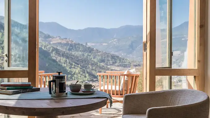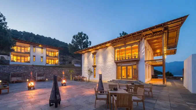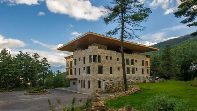 Ubicado entre altos cipreses, Zhiwa Ling Ascent, el primer hotel de concepto contemporáneo de Bután, fue concebido por un arquitecto austriaco y realizado a través de una colaboración conjunta entre planificadores de proyectos de Bután y Austria. El hotel dispone de 20 habitaciones en total. Las habitaciones están diseñadas de la manera más eficiente en energía que tiene la calidad para capturar toda la luz solar natural. Todas las habitaciones ofrecen serenas vistas panorámicas de la naturaleza y el valle. El ingenioso restaurante del hotel ofrece una excelente experiencia culinaria con sabores directamente de la huerta orgánica.