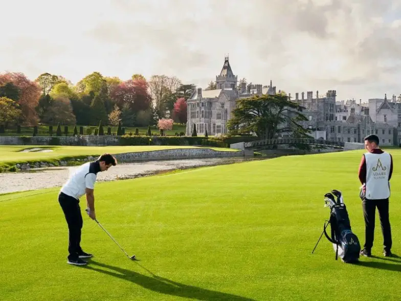 Situado en las afueras de uno de los pueblos más bonitos de Irlanda, Adare Manor Resort es igual de cautivador. La mansión neogótica cuenta con 365 vidrieras y lujosas habitaciones con chimeneas originales del siglo XIX y camas con cabeceras bellamente talladas. Lo más destacado para los golfistas es su campo similar a un parque, creado en armonía con el impresionante entorno natural, que incluye árboles maduros, un terreno exuberante y suavemente ondulado y las orillas del río Maigue. El complejo también ofrece una serie de otras actividades, como paseos a caballo, paseos en globo aerostático, pesca y cetrería junto con cenas galardonadas.