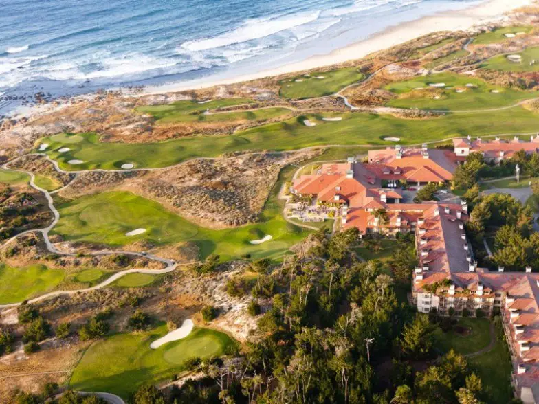 The Inn at Spanish Bay es parte de Pebble Beach Resorts, y atiende principalmente a ávidos golfistas y viajeros de lujo. Tiene al frente un campo de golf de estilo escocés que bordea una de las costas más magníficas del mundo y ofrece algunas de las mejores vistas de Pebble Beach. Hay múltiples opciones para comer en todo el complejo de Pebble Beach, mientras que muchas de las espaciosas habitaciones dan al Pacífico. Algunas también incluyen chimeneas, baños de mármol italiano y balcones.