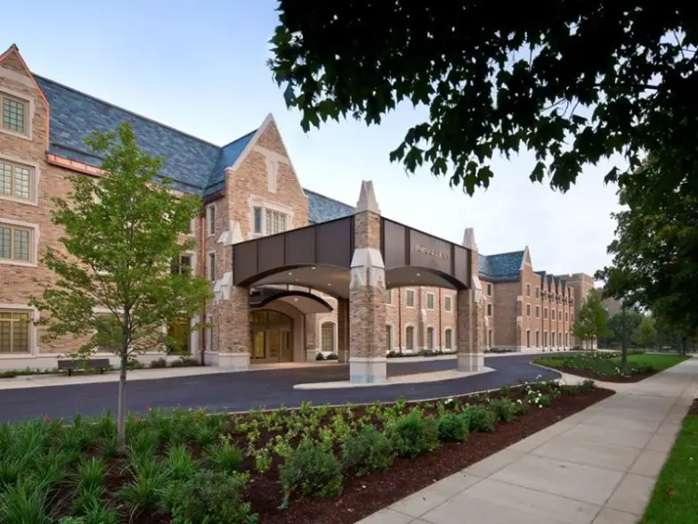 También puede hospedarse en el corazón del campus de Notre Dame al reservar una habitación en Morris Inn Notre Dame. Este resort AAA Four Diamond tiene elegantes habitaciones y suites. También tiene un restaurante informal en el lugar, terraza al aire libre, restaurante de cocina francesa, salón de baile y espacio para reuniones. Es un hotel que admite mascotas y ofrece servicio de lavandería el mismo día, servicio de limpieza de zapatos y acceso a las instalaciones de fitness de Notre Dame.