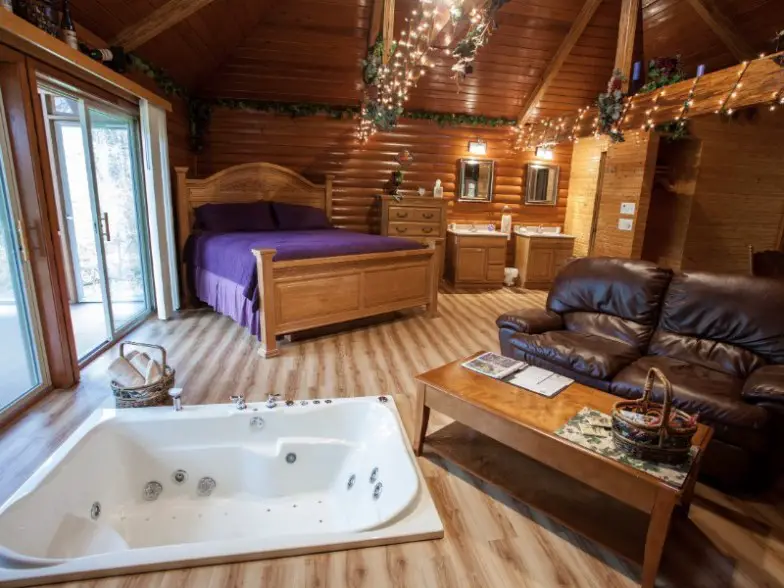 Para un resort de escapada romántica para parejas, no busque más allá de Serenity Springs. El complejo está situado en 85 acres privados con cabañas arboladas cerca de La Porte y Michigan City, Indiana. Este es un gran lugar para lunas de miel y relajarse con la persona que amas. Disminuya el ritmo de vida y disfrute de las bicicletas, los paseos en carruaje, la pesca, las fogatas y los senderos panorámicos de cortesía. Las cabañas son acogedoras en cualquier época del año con mucho encanto campestre. Para reuniones más grandes, hay dos casas club en el lugar. Elija paquetes complementarios románticos para celebrar algo especial con pétalos de rosa, aceites para masajes, champán y otras sorpresas.
