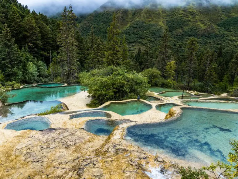 Hay muchos lugares para ver en el Parque Nacional Huanglong, desde sus piscinas formadas por calcita que revientan de color hasta sus cascadas escondidas debajo de los picos nevados. Ubicado en la cordillera de Minshan al noroeste de Chengdu, el parque presenta valles pintorescos, bosques pacíficos y lagos tranquilos. Asegúrate de ver la piscina de bienvenida con sus estanques apilados, la cascada voladora con varias capas y el bosque de rododendros lleno de flores en flor. El Templo Huanglong Back data de hace 600 años y ofrece el telón de fondo perfecto para una postal perfecta de esta pintoresca zona.
