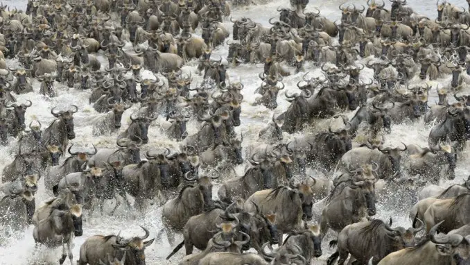 El Parque Nacional más antiguo y popular de Tanzania es Patrimonio de la Humanidad por la UNESCO y recientemente fue proclamado séptima maravilla mundial. El Serengeti es famoso por su Gran Migración anual, una odisea de 1.200 millas de 1,5 millones de ñus y 200.000 cebras, todos ellos persiguiendo las lluvias en una carrera por la vida, mientras son comprados por una increíble cantidad de depredadores. Sus posibilidades de ver una matanza son bastante altas cuando visita el área en la temporada adecuada, cuando columnas de animales de 40 km (25 millas) de largo se sumergen en aguas infestadas de cocodrilos en el éxodo anual hacia el norte (junio) o cuando reponen su especie en una breve explosión demográfica que produce más de 8.000 terneros diarios (febrero).