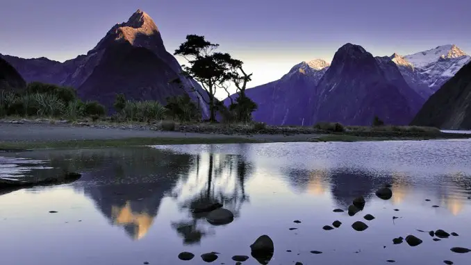 El Parque Nacional Fiordland en la Isla Sur de Nueva Zelanda se estableció en 1952 y es parte de la naturaleza más grande de Te Wāhipounamu, un Área del Patrimonio Mundial de la UNESCO. Con una superficie de 1,2 millones de hectáreas, el Parque Nacional de Fiordland alberga exuberantes bosques tropicales, ríos prístinos, lagos cristalinos, imponentes acantilados, cumbres nevadas, majestuosos fiordos tallados en hielo y una flora y fauna únicas que existen desde que Nueva Zelanda formó parte del supercontinente Gondwanaland. Incluso en los frecuentes días de lluvia, el paisaje es espectacular, con paredes enteras del valle que se convierten en cascadas estruendosas. Lo más destacado es el impresionante Milford Sound con Mitre Peak, que se eleva 1692 m (5551 pies) sobre el nivel del mar y es uno de los picos más fotografiados del país.