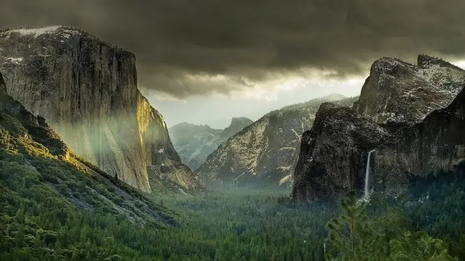 Protegido por primera vez en 1864 y uno de los primeros parques en el Servicio de Parques Nacionales, Yosemite de California es un sitio del Patrimonio Mundial de la UNESCO. La característica central del parque es el valle de Yosemite, que está rodeado de imponentes cumbres de granito, densamente arbolado con pinos y cascadas espectaculares . Pero el parque es mucho más que un gran valle con cascadas: dentro de la vasta área silvestre de Yosemite, encontrará profundos valles, grandes prados, antiguas secuoyas gigantes y más de 800 millas (1300 km) de caminatas espectaculares. El parque tiene un atractivo distintivo sin importar la época del año: la primavera trae cascadas, el verano permite abordar todas las actividades al aire libre, el otoño cuenta con árboles coloridos y menos multitudes, y el invierno se convierte en un paraíso nevado para el esquí de fondo y las raquetas de nieve.