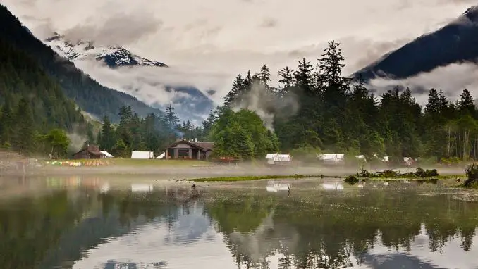 Clayoquot Wilderness Resort, abierto de mayo a septiembre, es una paradoja exótica de lujo indulgente y naturaleza remota e indómita dentro del Parque Nacional Pacific Rim de Canadá. Este exclusivo enclave glamping estilo safari del siglo XXI con grandes tiendas de campaña de lona blanca, comedor, sala de estar y tiendas de spa, ofrece una cocina exquisita y aventuras impresionantes, dando a los visitantes una rara muestra de cómo los afortunados pasaban sus veranos 'a duras penas' algunos 100 años atrás. Veinte tiendas de campaña tipo suite exhiben muebles antiguos, alfombras opulentas, edredones de plumas, estufas de leña a propano con control remoto y comodidades de lujo. ¡Cuidado con los osos negros y las ballenas!