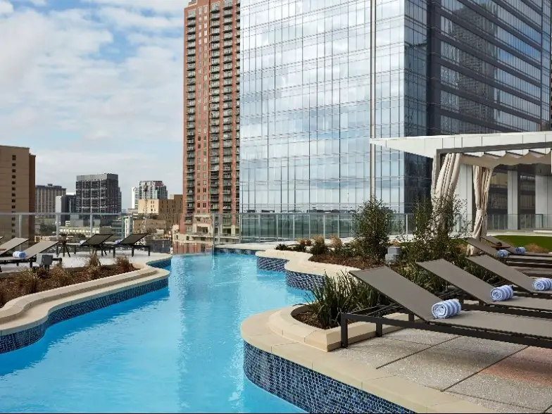 The St. Regis es un hotel Marriott en el glamoroso distrito Uptown y en el epicentro comercial de Houston. Usted y sus invitados a la despedida de soltera pueden tomar el té de la tarde en el salón y cócteles con música en vivo en Remington Bar. Además, planifique reservar un tratamiento de spa con sus mejores amigos en el spa del hotel y darse un chapuzón en la piscina al aire libre (¡que es una de las mejores piscinas de hotel en Houston !) El spa ofrece masajes, tratamientos faciales, exfoliaciones corporales y más. El servicio de habitaciones está disponible las 24 horas aquí para sus refrigerios nocturnos cuando regrese de los bares. Luego, para hacer ejercicio, puede ir al gimnasio en el lugar todos los días.