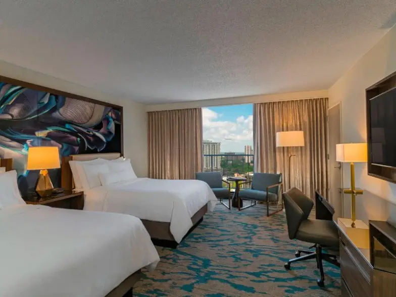 También nos encanta el Westin Galleria como hotel para despedidas de soltera debido a su elegante lobby bar con cócteles artesanales y piscina en la azotea con hermosas vistas de Houston. También ofrece una conexión directa con la Galleria. Hay un restaurante en el lugar para opciones de comida sabrosa y fácil, así como también un gimnasio abierto las 24 horas.