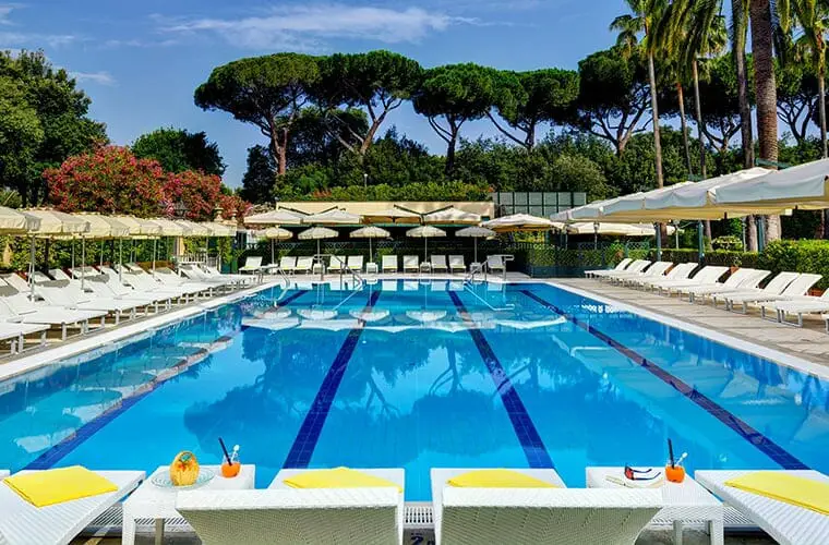 El Grand Hotel Parco Del Principi es otro gran hotel de lujo en Roma para familias, y es uno que ofrece una gran piscina cubierta junto con una al aire libre, ambas con un lado poco profundo para los nadadores más jóvenes.