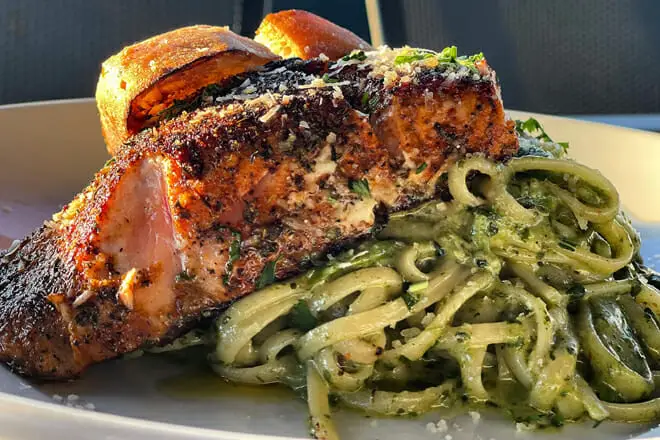 No podemos dejar de comer su ensalada de marisco. Cargada con carne de cangrejo y camarones, esta ensalada es fresca y sabe a magia. Alternativamente, puede ir con sus pasteles de cangrejo dulces y regordetes.