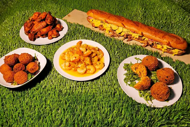 Comparta con su mesa un pastel entero de Nonna Giovanna y Honey BBQ Wings.