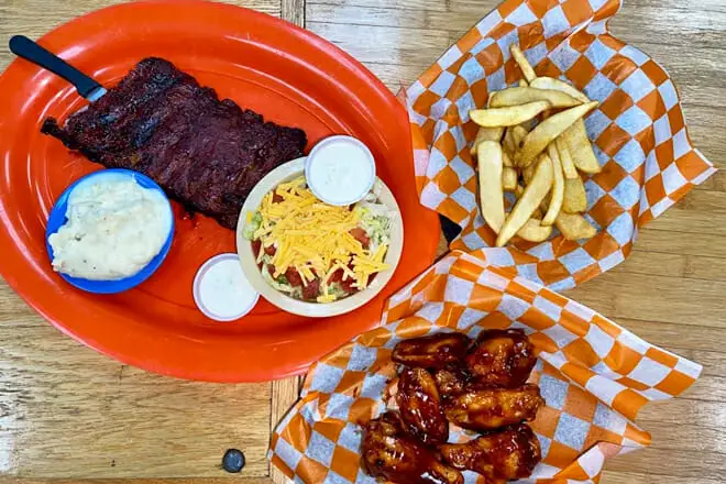 Echa un vistazo a su pequeño sándwich especial de barbacoa de puerco desmenuzado servido con frijoles horneados y ensalada de repollo. También ha obtenido críticas muy favorables en Internet, por lo que es mejor darle una oportunidad.
