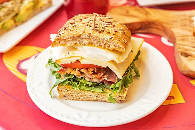 Elige el plato BEC maridado con una taza de café Cortado.