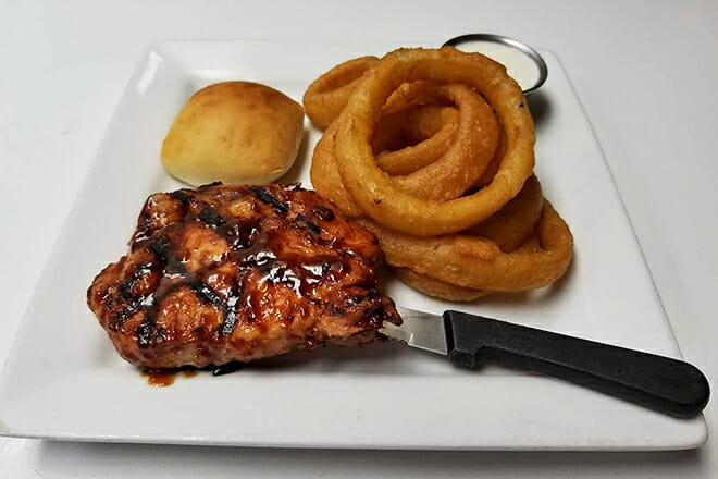 Aproveche el plato de barbacoa que puede contener carne de cerdo, res, costillas y pollo, servido con salsa y guarniciones. También puede tener las costillas de media losa si ese es el tipo de carne que prefiere. Complete su cena con unas papas al horno al lado.