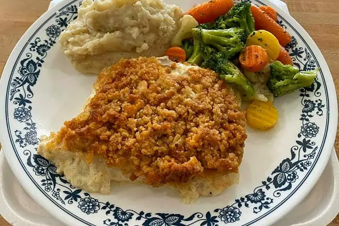 Cuando visite durante la hora del almuerzo, pida el cerdo relleno de manzana asada al horno. Viene con una guarnición de puré de manzana, salsa y su elección de papas o vegetales.