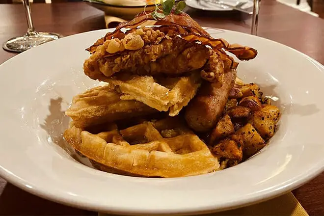 Pruebe un plato famoso con una patada ordenando el Paprika Schnitzel. Consiste en cebollas picadas, apio, un demi-glace, tocino y crema espesa con su elección de dos lados.
