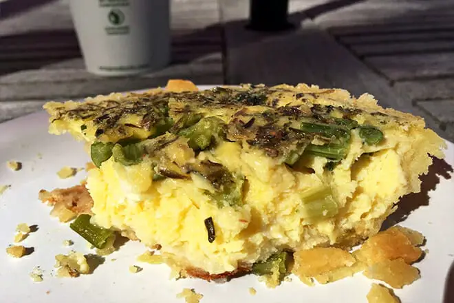 Pruebe una especialidad ligera y diaria ordenando el Quiche del Día. Se compone de diversas verduras ecológicas de temporada.